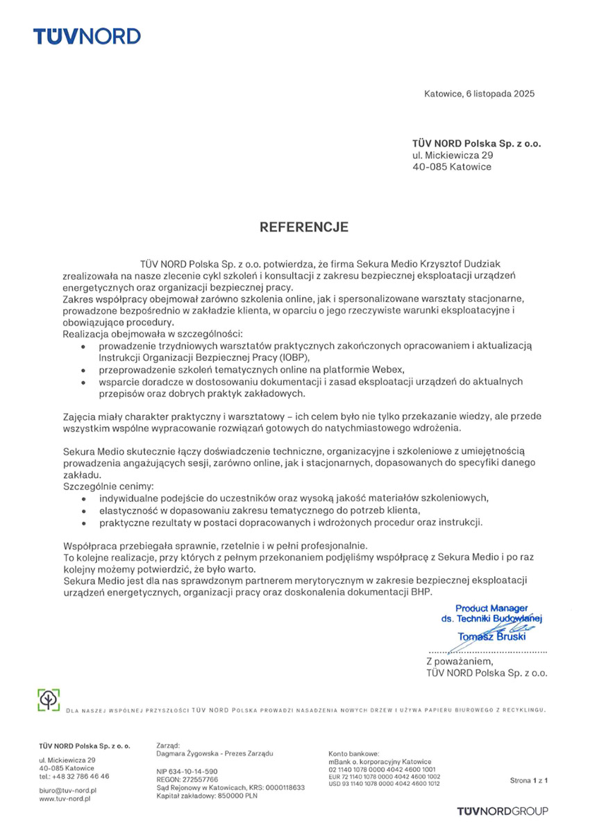 ZE SZKOLENIA SKORZYSTAŁY m.in.: WERNER KENKEL ORAZ KLIENCI TUV NORD POLSKA